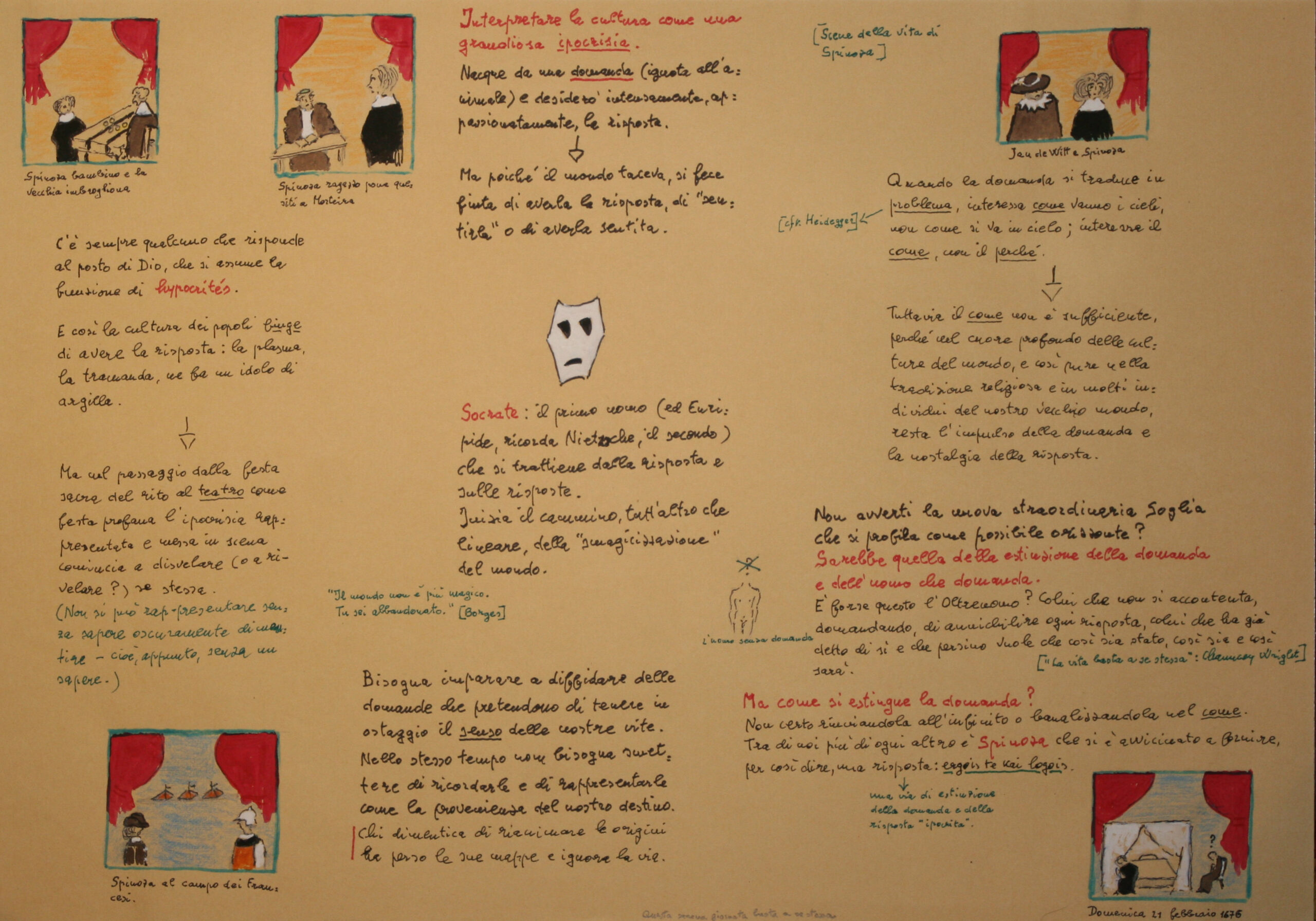 Per orientarsi nei materiali raccolti nell’Archivio digitale si consiglia di fare riferimento alla Guida alla consultazione predisposta dai curatori. Digitando nella Barra di ricerca anni di riferimento, parole chiave o titoli completi di seminari, corsi, conferenze di Carlo Sini, si accede all’elenco dei materiali presenti nel sito. I curatori integrano annualmente i materiali dell’Archivio digitale e ne implementano l’indicizzazione. Per una panoramica completa dei materiali cartacei a cui attinge il presente Archivio, si veda la sezione Fondo cartaceo – Inventario